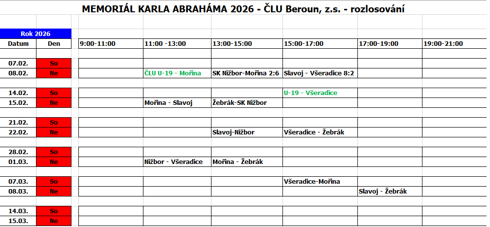 | ČLU BEROUN U19 | 7:1 | 2:2 | X |